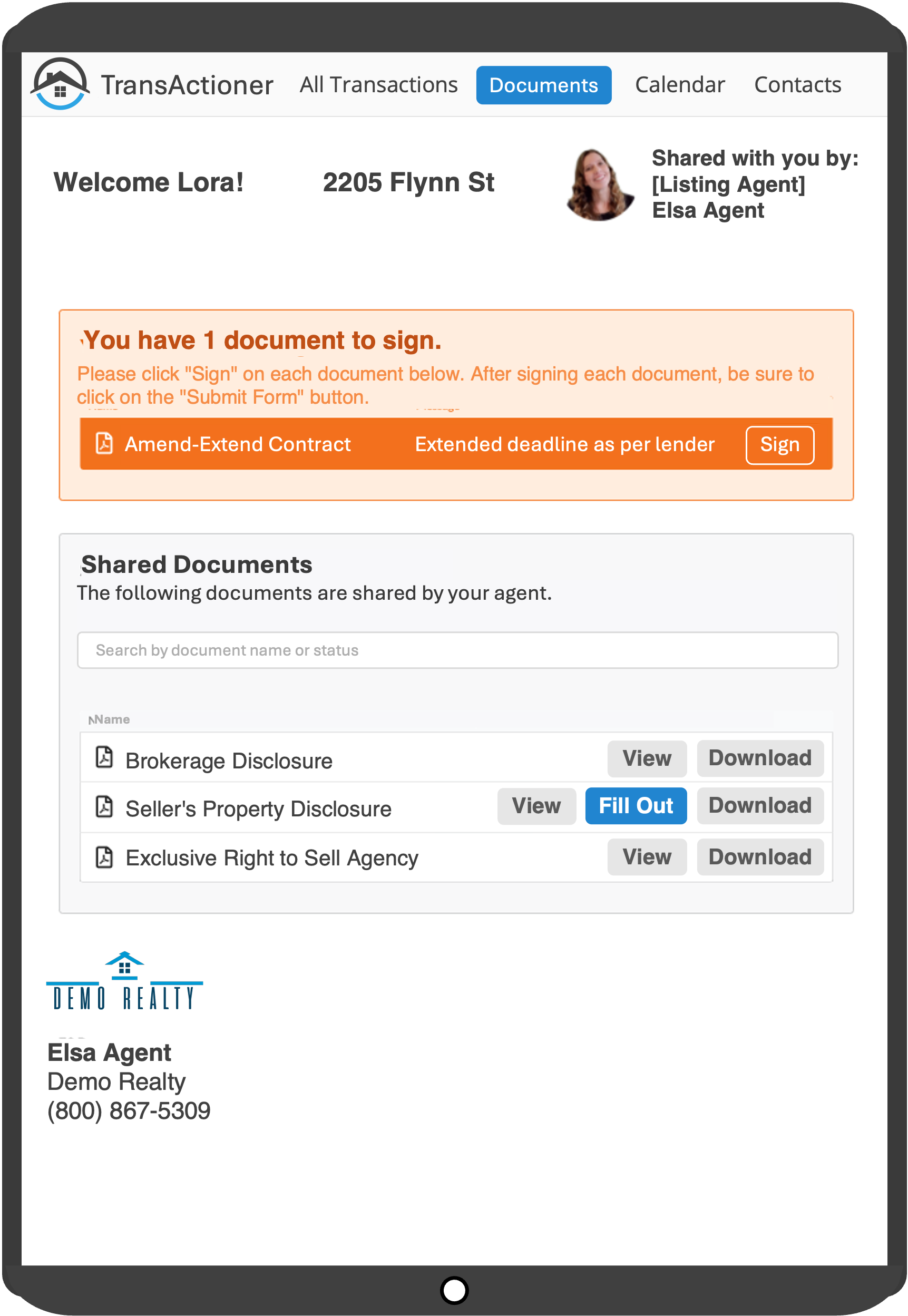 Your clients can view all of their documents for the transaction along with viewing the upcoming deadlines in a calendar. They also use this portal to sign documents that you share with them. The Client Portal has: